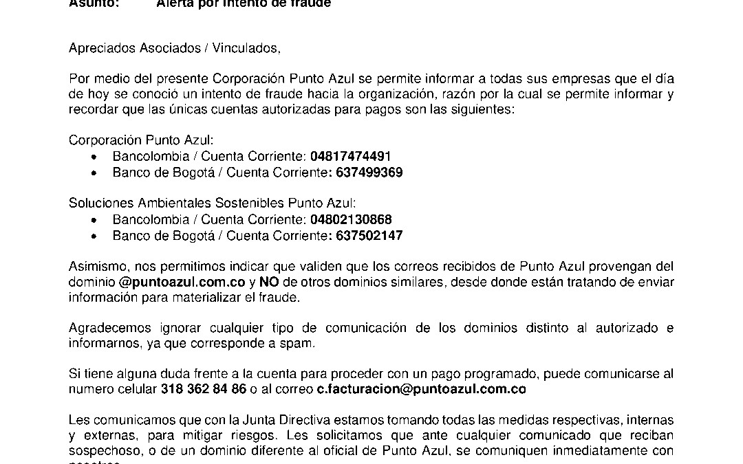 Comunicado Oficial Punto Azul- ATENCIÓN: INTENTO DE FRAUDE