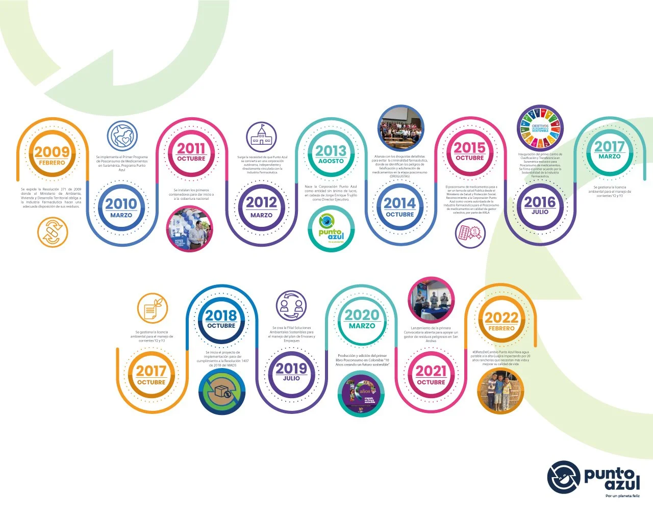 Somos una entidad sin ánimo de lucro, que agrupa, representa y apoya a las industrias dedicadas al cuidado de la salud y el bienestar de los colombianos en la gestión adecuada de sus residuos. Trabajamos para fomentar iniciativas de responsabilidad social empresarial en el marco de los Objetivos de Desarrollo Sostenible de las Naciones Unidas, de la mano de las empresas Punto Azul construímos un futuro sostenible y dejamos huella en Colombia haciendo feliz al planeta.